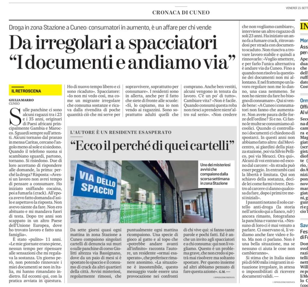 Queste storie si intrecciavano con un quartiere, quello della stazione di Cuneo, diventato negli anni un crocevia di spaccio e consumo. Blitz e controlli hanno continuato a spostare il problema, non a risolverlo. Da via Meucci a piazza Boves, dai giardini Fresia al Parco della Resistenza, fino al Movicentro: uno spostamento continuo, mai davvero risolutivo. D’estate alcuni marciapiedi diventano veri e propri “uffici”: si preparano dosi, si vende, si fuma. Il micro-spaccio oggi è mobile e anche digitale, e chi lo cerca sa che lo trova “sempre e ovunque”. E il crack si sta sempre più diffondendo tra giovanissimi e classe media. Persone “normali”, come le definirebbe la maggioranza del nostro Consiglio Regionale. E le cui storie potrebbero magari parlar di loro, delle loro famiglie, dei loro amici e conoscenti.
