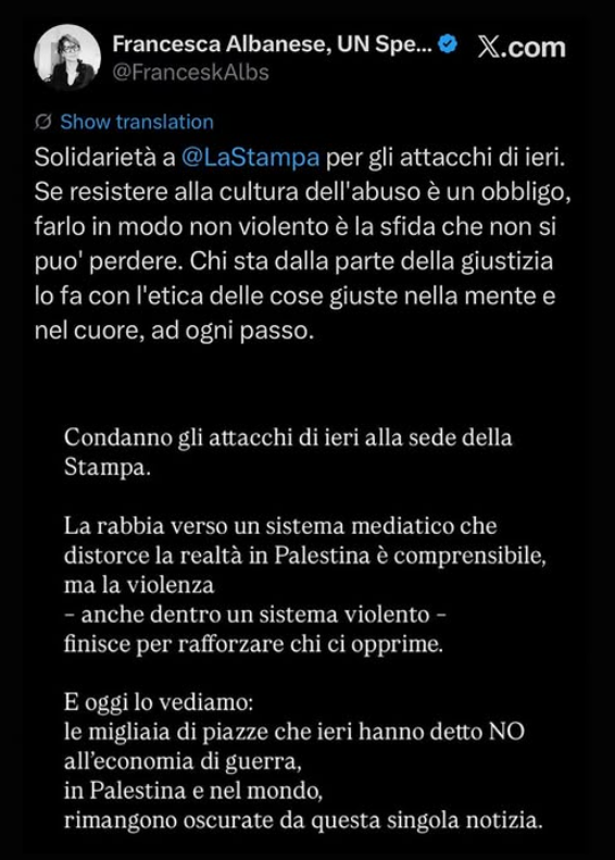 E, poche ore dopo, un’altra immagine: l’irruzione nella sede de La Stampa di Torino da parte di un gruppo di manifestanti.
